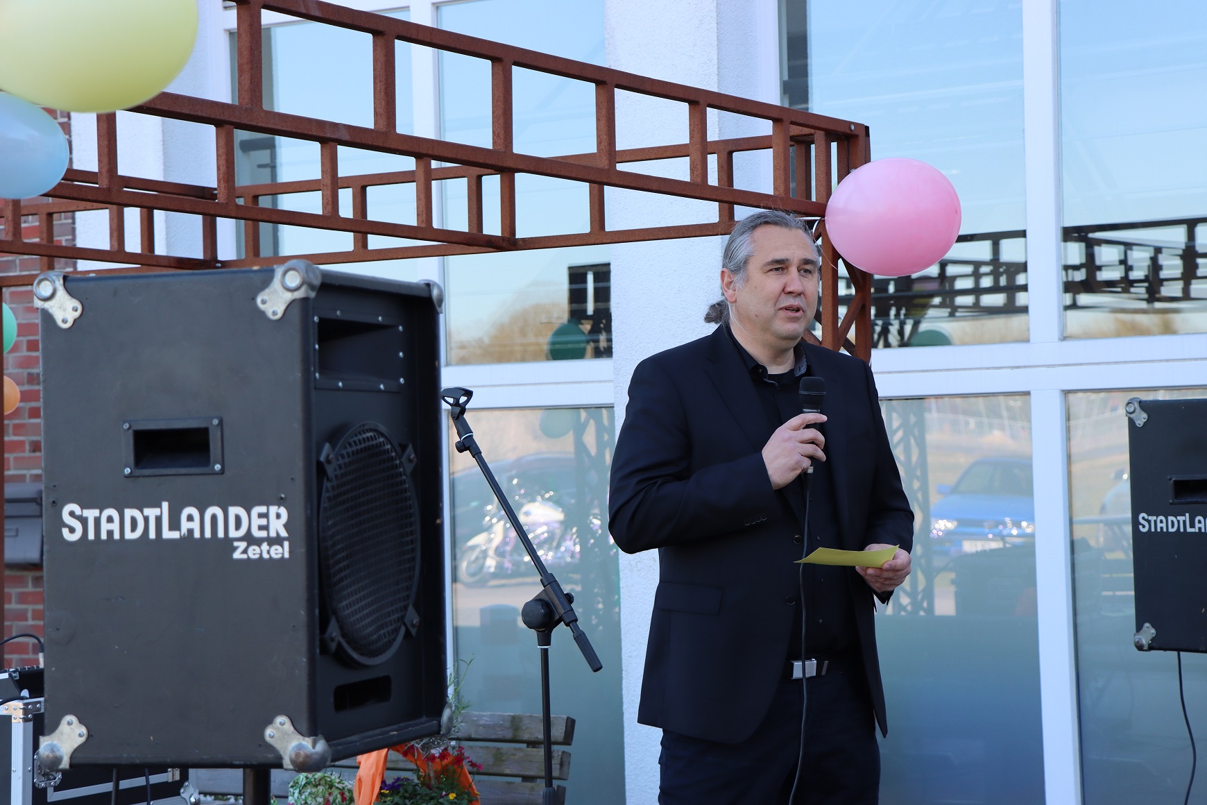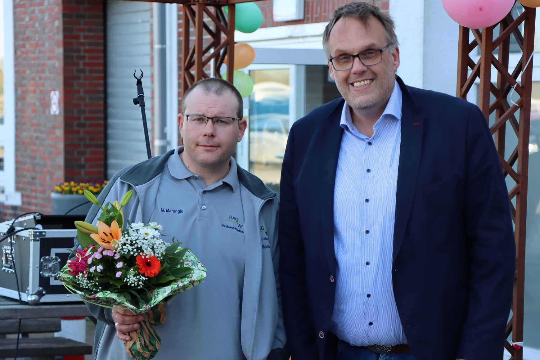 ARTEC-Werkstattratsvorsitzender Massimo Marongiu betonte in seiner Rede, dass die Zeit des Umbaus nicht immer für alle einfach gewesen sei: „Ich weiß, dass es manchmal für euch nicht so leicht war den Tag auszuhalten und es noch schwerer was als gewohnt.“ Anschließend bedankte er sich für das Verständnis aller Beschäftigten.