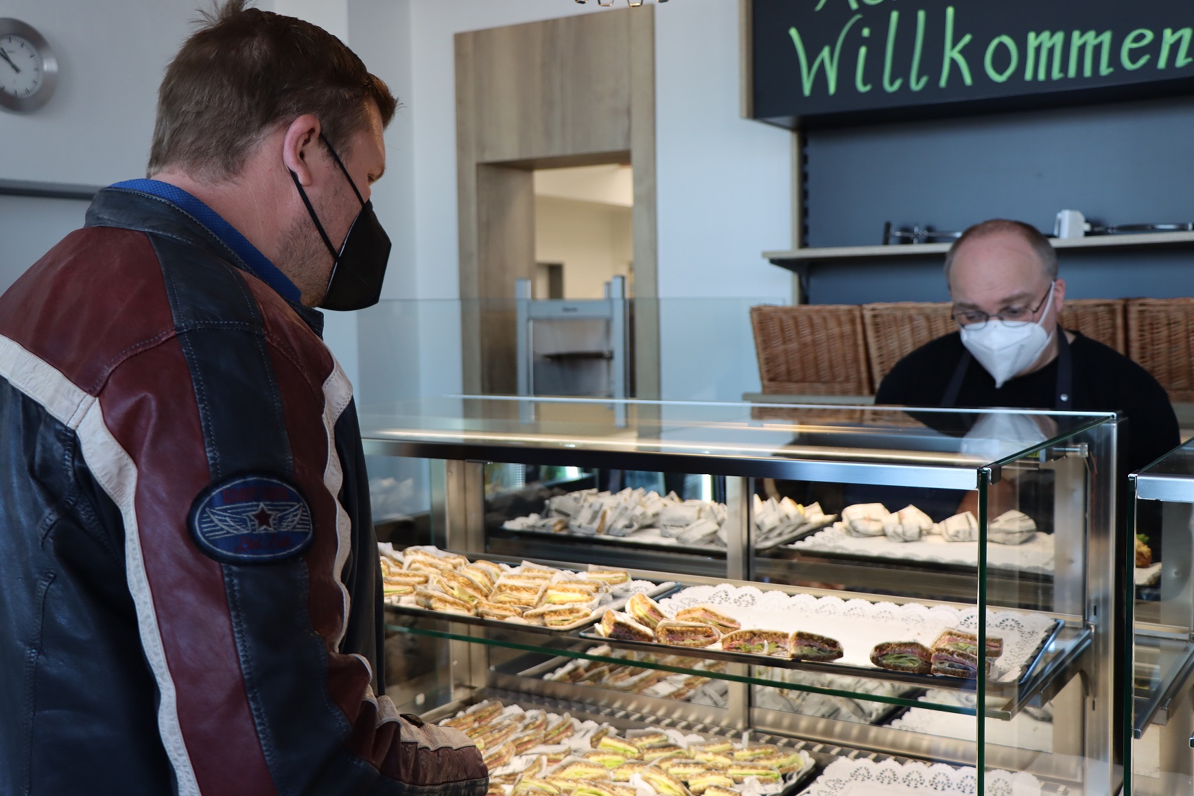 Durch die Umstrukturierungen innerhalb der ARTEC konnte der Kiosk nun in größere Räumlichkeiten ziehen und so das Angebot ausgeweitet werden. „Man kann sagen, wir haben hier ein Café in dem Inklusion gelebt wird“, so Werkstattleiter Markus Haarmann. So kommen täglich viele Menschen auf das TCN-Gelände, um im Kiosk für ihr Frühstück oder Mittagessen einzukaufen. Betrieben wird der Kiosk von den Beschäftigten des Bereichs Hauswirtschaft. Gemeinsam mit Abteilungsleiter Christoph Müller backen sie Pizza, belegen Brötchen und bieten in ihrem Kiosk zusätzlich Rollos, Snacks und vieles mehr an.