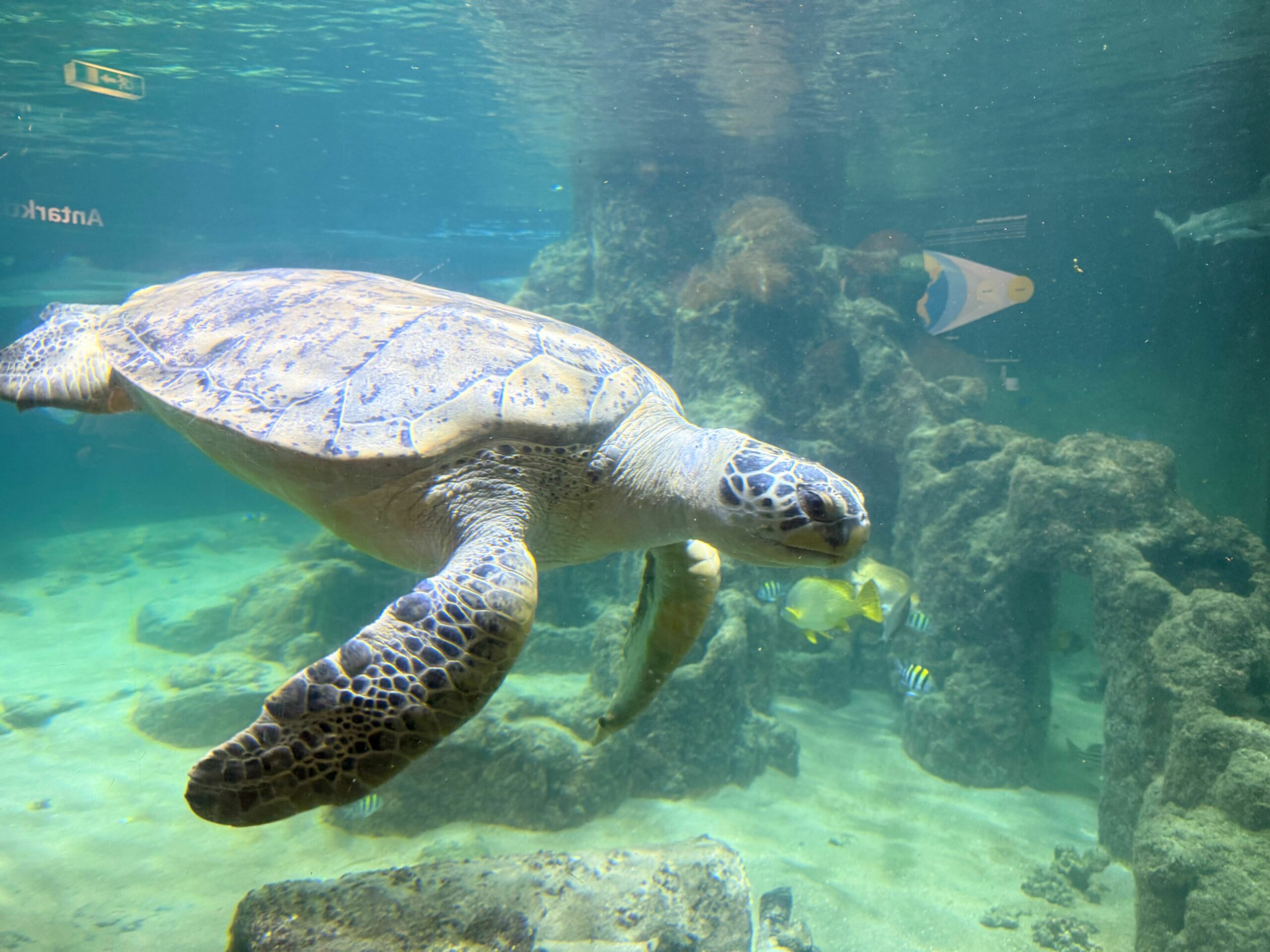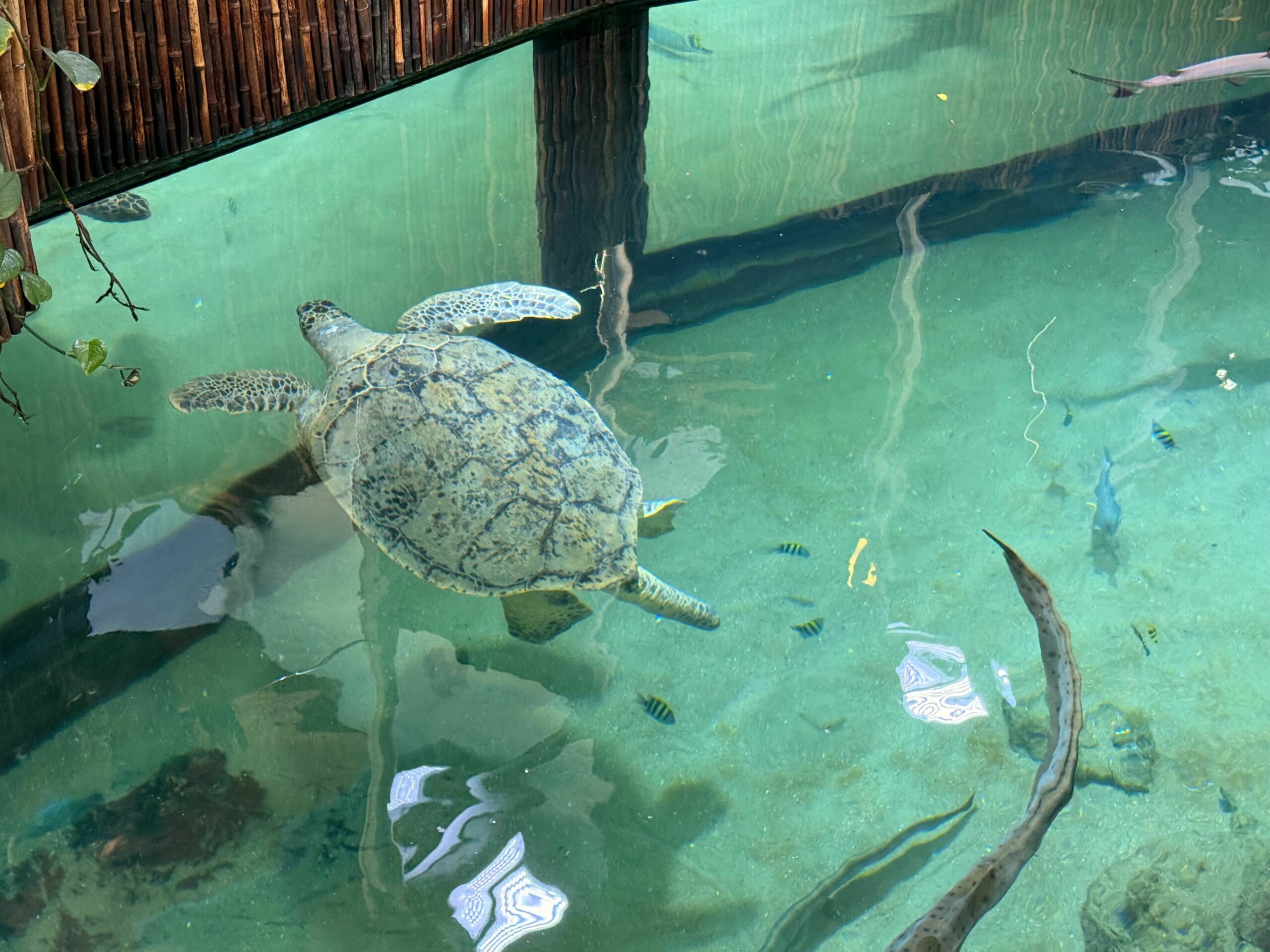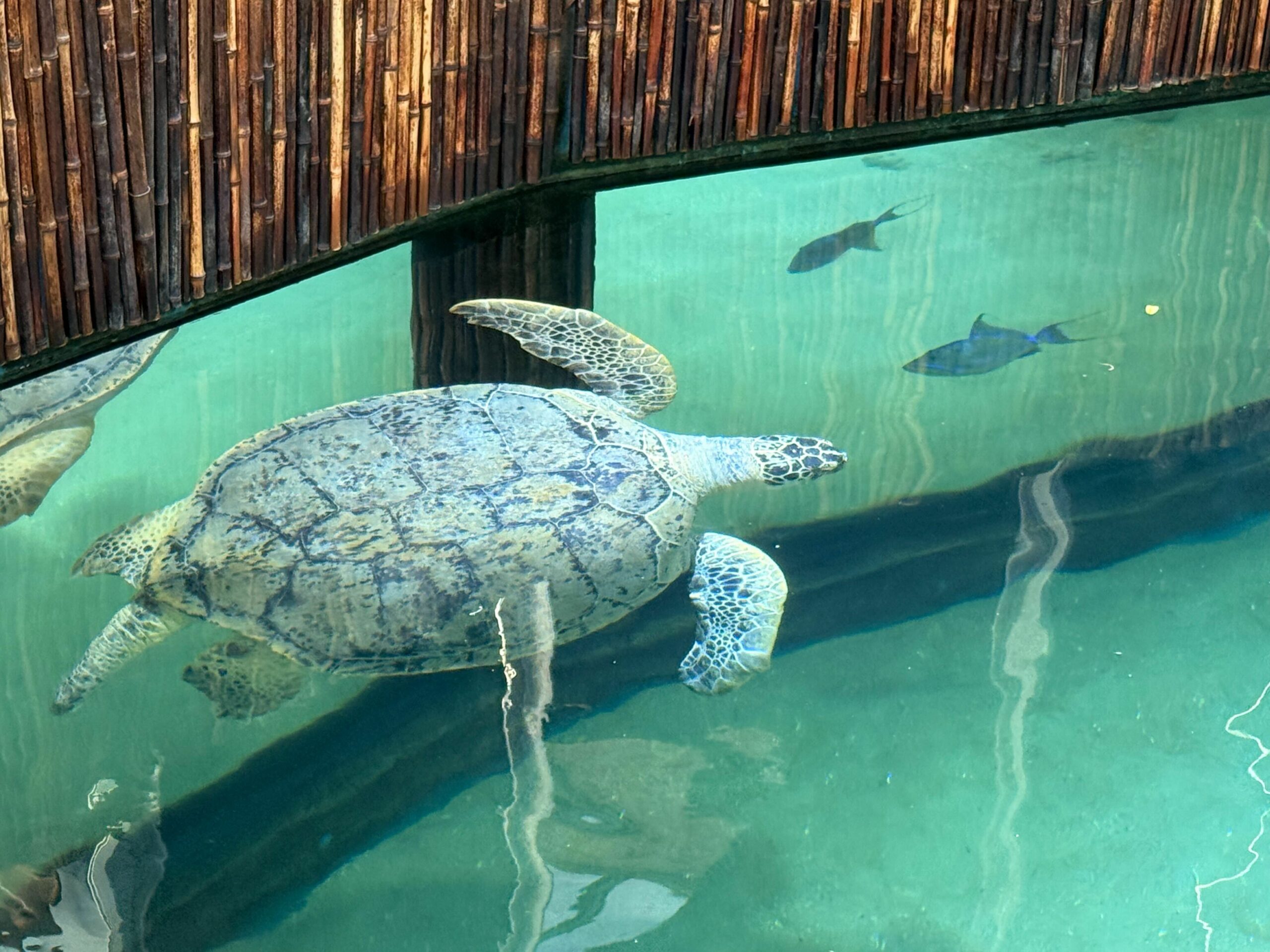 Ernie kam aus dem niederländischen Scheveningen, wo sein Lebensraum saniert wird. Für das Aquarium ist er eine Attraktion – und gleichzeitig eine Verantwortung. Grüne Meeresschildkröten sind stark gefährdet. Mit einer Panzerlänge von einem Meter und der Möglichkeit, noch bis zu 1,50 Meter zu wachsen, ist Ernie ein echter Meeresriese.